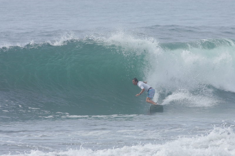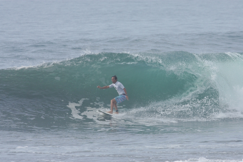 年齢を重ね大人になると、無理せず楽しむスタイルが主流になる。ガツガツと波に乗り、今日ですべてが終わりかのように突っ込んでいくのは、若く蒼いサ-ファ-の役割だ。しかし、高下は、「ギリギリ乗れるかどうかぐらいの波がいい」と、若手のように自分の限界をプッシュアップしている。ダブルサイズの波をダウン・ザ・ライン※することに闘争心を燃やす。サ-フィンにおいては、常にリ-ディングエッジに立っていたい気持ちを隠そうとしない。