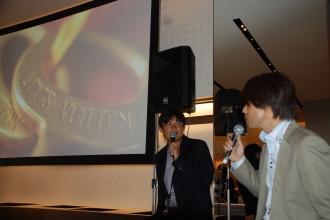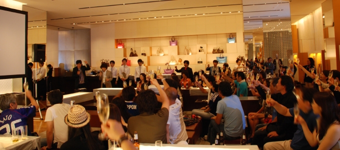 そんなワールドカップの激戦を遡ること少し。6月19日、予選リーグの日本vsオランダ戦の夜に、数十名のファウストたちが都内のある場所に集まっていた。その場所はルイ・ヴィトン六本木ヒルズ店。サムライたちを応援すべく、閉店後の店舗2F部分で『ルイ・ヴィトン+ファウストA.G. ワールドカップ観戦ナイト』が開催されたのだ。150年という長い歴史と技術により生み出されたルイ・ヴィトンの美しい品々と、モノグラムパターンが随所に施されたスタイリッシュな空間での観戦……。なんとも贅沢なパブリックビューイングである。