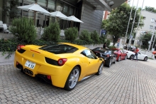 去る7月の暑い日、Faustのメンバーを対象にしたフェラーリのニューモデル「458イタリア」の小さな試乗会が行われました。用意されたのはカリフォルニアが1台と458イタリアが3台。今回は458イタリアがメインなので、カリフォルニアは誘導車兼カメラマンカーということに。458イタリアはピロタ・フェラーリ用車両が2台と広報車両が1台という内訳です。
