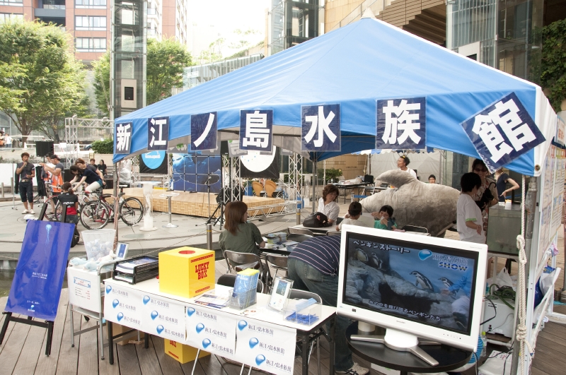 辺りが薄暗くなると、アクアリウムの美しい青が更に映え、幻想的な風景が広がる。最後のライブが19時に終わり、二日間、六本木の夏を彩った「東京アクアリオ2010」は静かに幕を下ろした。