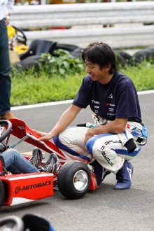 「では、早速カートに乗ってみましょう」――。片山氏、千代氏の両名によるサポートを受けながら、まずは子供たちがカートに乗り込んだ。器用に乗りこなす子は余裕の笑顔で走っていたが、なかなか進むことのできない子は途中で泣き出すといったトラブルも。しかし、ここが“片山校長”の狙い目。