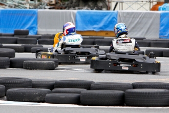 続いてファウストたち、片山氏、千代氏によるカートレースがスタートした。元F1、そして現役F3ドライバーとともにサーキットを走るという超贅沢な瞬間に、全員の目が輝いている。プロのドライビングと比較すればテクニックの差は明確なものの、ファウストのなかにはトップを走ったり、片山氏とデットヒートを繰り広げたりする人も。最終的には片山氏の勝利に終わったが、「負けてたまるか!」という声がピットまで聞こえてきそうなほど、全員が大人げナシの真剣なレースを繰り広げた。