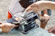 しかし、ここでもただのキャンプにしないのが片山校長のこだわりである。まず、全員がマイ食器を持参することを義務づけ、極力ゴミを出さずに少しでも環境に優しく接する大切さを伝えた。そして、翌日には参加者全員が自分でパンを焼き、魚を釣り、うどんを打つといった自給自足に挑戦させ、食べ物の大切さを子供たちに教えた。特に魚釣りでは、ファウストたちが負けん気を発揮しながら釣るその横で、子供たちも必死に頑張るという光景が見られ、「大人が頑張ると子供も頑張る」という片山理論を十分に証明する結果となった。