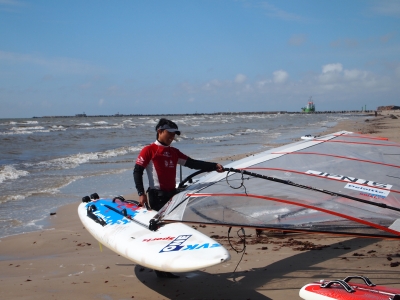 エキップメントルールとして、ボ-ドは1艇、セイルは2枚(9.5㎡)、フィン2枚しか使用できない。どんな道具をいくつでも使用していいフルオ-プンの大会とは異なり、RWCはヨットにも似て、選手はほぼ同じ条件下で戦うのが特徴だ。杉浦は会社員なので海外遠征に行くと道具の輸送費だけでも莫大なオ-バ-チャ-ジがかかる。そのため、経済的な側面からも道具制限があることは非常に助かるという。