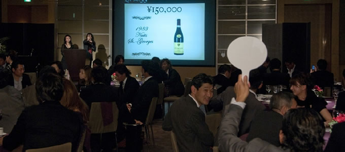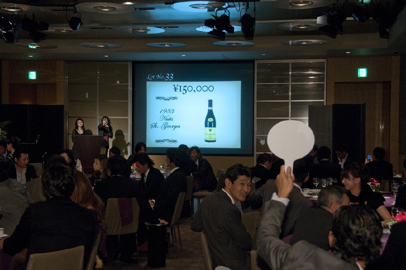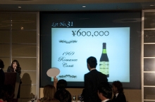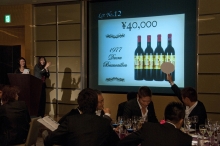 もうひとつのチャリティが「ワインオークション」だ。ブルゴーニュやボルドー、カリフォルニアなどの希少な33アイテムが、次々とオークションにかけられた。こちらも、収益金の一部が寄付に充てられる。