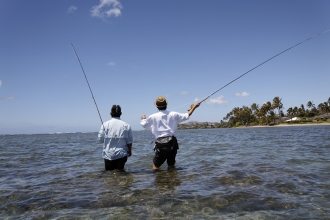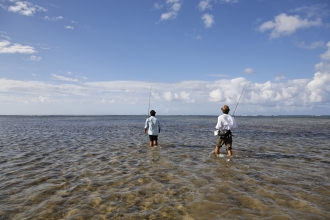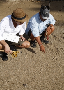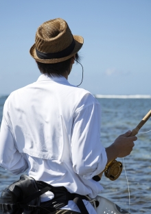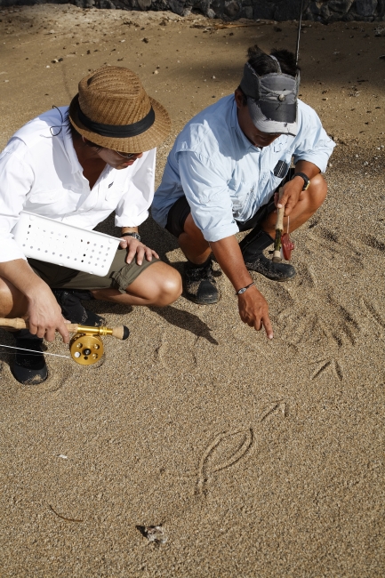 「ボ-ンフィッシュは、意外と敏感な魚なんですよ。魚の近くにフライを落とすとボーン用のフライは重いので、ポチャンと着水音で逃げてしまうことが多いんです。だから、魚が来る方向を読み、正確にフライを落とさないとけない。いかにフライを狙った場所に落として、フライを本物のエビのように演出して喰わせるか。それが、この釣りの生命線ですね。単純と言えば単純ですが、それが難しくもあり、楽しさでもあるんです」