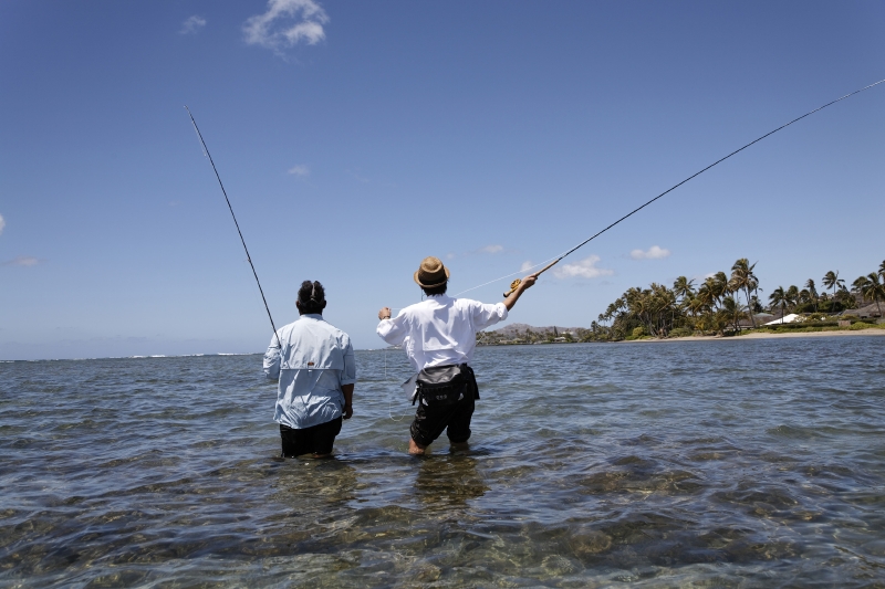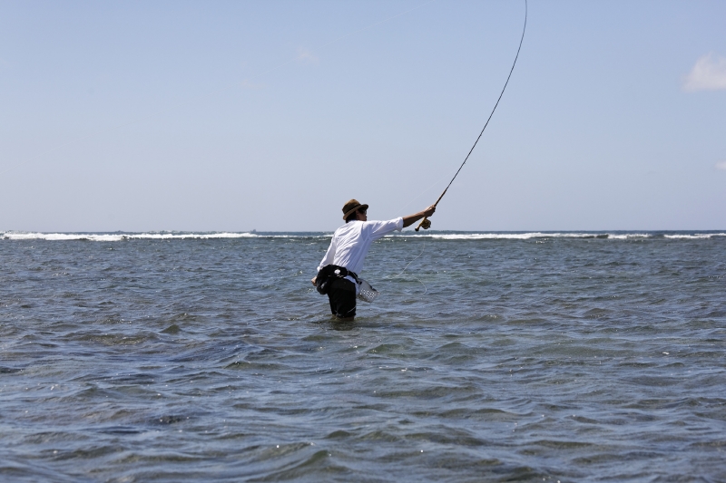 しかし、ハワイの海は、初日から入れ喰いさせてくれるほど甘くはなかった。ハワイは、天候が変わりやすく、コナウインドが吹いて海面を揺らす。そのため、フライを正確にキャストするのが非常に難しいのだ。加えて、まだボ-ンフィッシュの動きも完全に掴み切れておらず、初めての場所なので、なんとなく探りながらの釣りになってしまった。