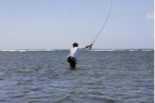 ゆっくりボ-ンフィッシュに近付き、進行方向、2~3m先にフライをキャストする。だが、思うようにヒットしない。魚には、まるで糸が見えているようだ。