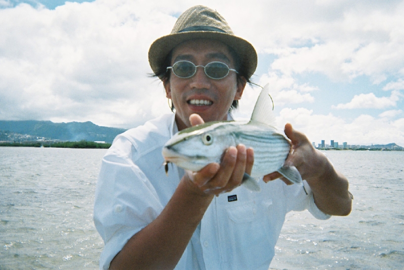 「ボ-ンフィッシュへの憧れは10代の頃からあったし、面白いという話は、海外に釣りに行く仲間から聞いていたんです。でも、ボ-ンフィッシュのいる場所がクリスマス島やバハマとか遠いところばかりで、気楽には行けなかった。ところが2年前にハワイでもボ-ンフィッシュが釣れるよって聞いたんです。で、昨年、オアフでやっと初挑戦することが出来たんです。10代の時の夢が実現すると思うと、すごく興奮しましたね」 不動産の開発事業などを手懸ける井上は多忙ゆえ、わずか4日間しか時間がなかった。出発2週間前にハワイのガイドに連絡を取り、タックル(道具)を用意した。