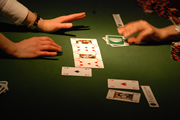 ストレートフラッシュ同士の勝負、土壇場逆転のフルハウス。強いハンドが出るたびに感嘆の声があがる。