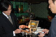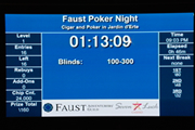 シガーの香りと朗らかな会話で会場が温まったころ、いよいよポーカータイムへ突入。司会者のスタートコールとともに、「ドンペリニヨン2002」で乾杯。画面の時計がカウントダウンを始める。シガーをくゆらせつつ、初めは互いの様子をうかがいながらゲームを進めていたファウストたちだったが、時間が経つにつれ、次第にヒートアップしていく。