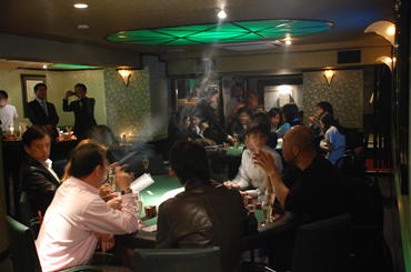 ゲームの開始前から、ラウンジでは日本たばこアイメックス株式会社が主宰する「粋人会議」協賛によるシガー「LA AURORA Preferidos (ラ オーロラ プレフェリドス)」がふるまわれ、参加者はゲーム中もその重厚な味わいと香りを堪能した。「ラ オーロラ プレフェリドス」はドミニカ共和国最古のシガー。独特のフォルムに包まれたシガーは上品でありながら濃厚な味わいが魅力である。