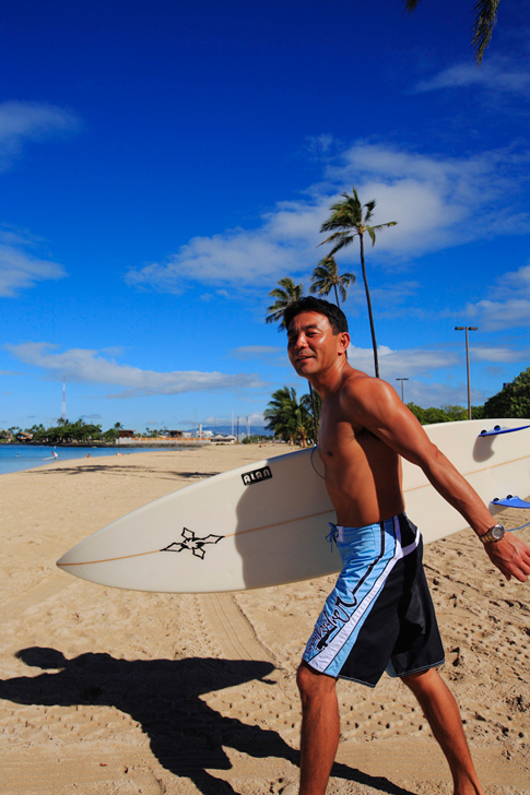「これからも日本の不動産の価値を高めていくのが我が社の目標です。さらに、不動産におけるアジアのネットワ-ク作りをしていきつつ、アジアでハワイと日本の不動産セ-ルスの枠を広げていきたい。そうして、55歳で引退して、ハワイで生活して、サ-フィンを楽しみたいですね。ハワイって、サ-フィンをしている年配の方々がすごく多いんですが、彼らの顔を見ていると、エゴとかそういうのが一切感じられない。素になって楽しんでいる。自分も、そういう状態になれるからサーフィンを今まで続けて来れたんだと思うし、これからもずっと続けていきたいと思っています」