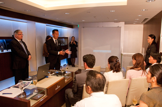 まずはオーデマ ピゲ ジャパン代表の麦野社長と、来日したスイス本国のオーデマ ピゲ博物館の館長マーティン・ウェリー氏の簡単な挨拶。そのあとはスクリーン映像を交え、ウェリー館長による時計のレクチャー。