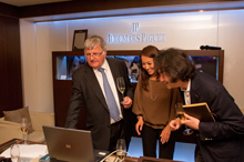 そして、お話の後は、今回ウェリー館長と共に日本にやってきた、門外不出といわれる博物館所蔵の貴重な約25品のスケルトンのタイムピースをじっくりと鑑賞。館長への質問など、この時でなければ聞けない様々な疑問を訊く機会にも恵まれた。