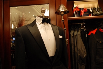 トルソーに着せたラルフ ローレンのタキシードを見て、岸田さんは、「これぞまさに王道です。必ず1着は持っているべきものです」と話し、さらに、可能であればラルフローレンの場合、メイド トゥ メジャーで作るのが一番と薦める。