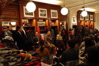 ファウストラウンジ第9弾は、11月下旬、トークショーとしてラルフ ローレン表参道店で、行なわれた。「ドレスコードの極意」と題して、岸田一郎・ラグジュアリーTV編集長(http://luxurytv.jp/)をゲストに迎え、日本人が戸惑いがちなドレスコードについて、正統派の着こなしから、粋な崩し方まで、なかなか聞けないその極意を大いに語ってもらった。