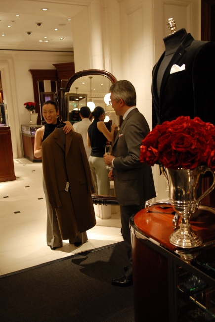 ラルフ ローレン 表参道の店内は、クリスマス仕様に飾り付けが行なわれ、フォーマルな装いからカジュアルなものまで、さまざまなディスプレイが訪れる者の心を浮き立たせていた。ドアオープンと同時に、ファウスト会員とゲストたちが続々と足を運び、シャンパンを片手に、談笑に花を咲かせていた。今日のテーマ、「ドレスコードの極意」を聞きに来た人々の装いも華やかで、トークを前に会場全体がすでに素敵なパーティ会場のようだ。