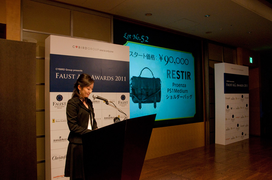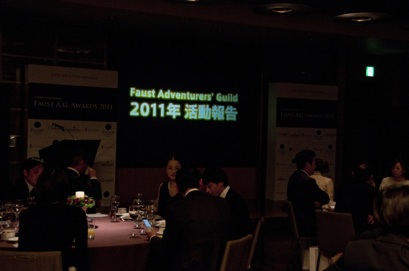 ファウストA.G.の1年間の活動を締めくくるチャリティイブニングが、2011年末、東京・六本木のグランドハイアット東京で開催された。今回で3回目を迎えるこのパーティは、同日昼に執り行ったファウストA.G.アワード各賞の受賞者を祝い、ファウスト会員が親交を深めるとともに、1年間の活動を振り返ることを目的に毎年末に開かれる。