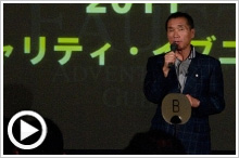 続いて、当日昼に代官山のシアター・サイバードにて行われたファウストA.G.アワード2011受賞者の紹介へ。受賞者の鈴木一也氏(ファウスト大賞、社会貢献活動賞)、荻田泰永氏、角幡唯介氏(ともに冒険家賞)、アラン・ロベール氏(挑戦者賞)、篠塚建次郎氏(特別賞)の登壇となった。
