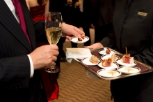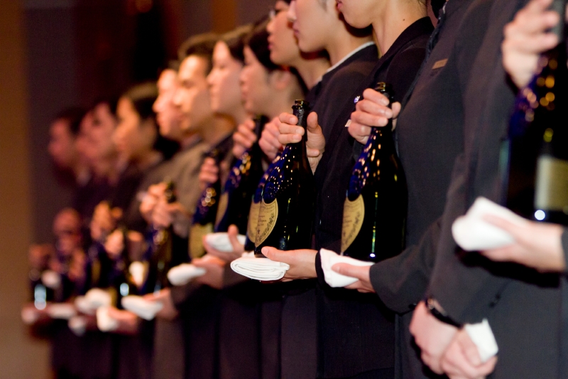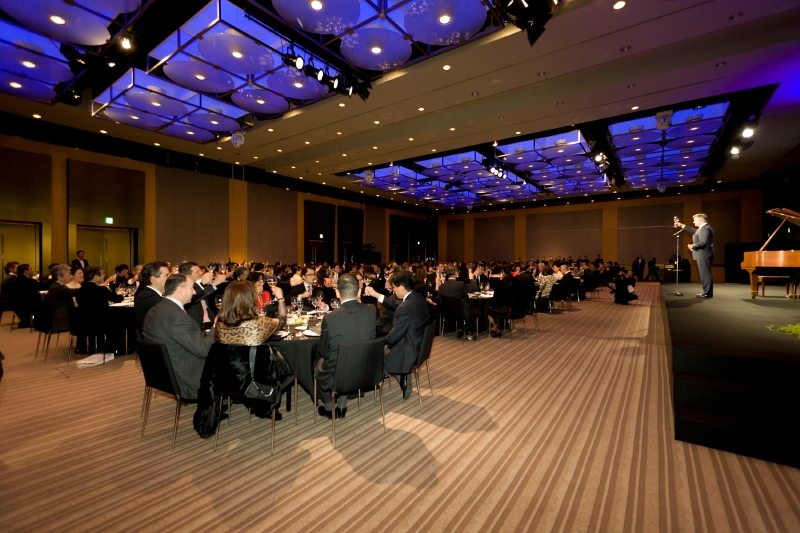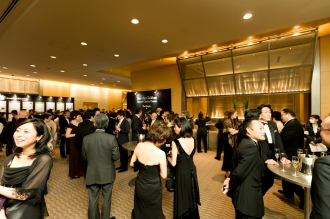 出席者は今年もファウスト会員をふくめ、各業界で活躍するリーダーや企業オーナーなどが数多く見受けられる。紳士、淑女たちは「ドン ペリニヨン ヴィンテージ2003」によるシャンパンカクテルを経て、ディナー会場へと移っていった。