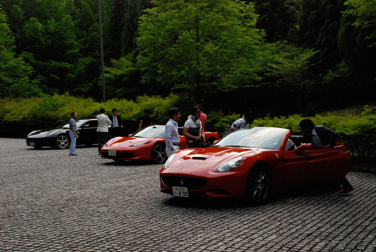 やはりカラリと晴れ渡った晴天の下、3戦目となる大阪大会を6月7日(木)、ザ・サイプレスゴルフクラブ(兵庫・丹波)にて開催した。当ゴルフツアーは3戦とも晴天に恵まれた。サイプレスは、93万平方mの敷地を有し、3方を緑豊かな丹波の山々に囲まれた、大自然に潜む隠れ家のようなクラブとして知られている。新緑の木々に包まれたコースで、ファウスト会員をはじめ参加者は遠く山々を望みながら、文字通りのびのびとラウンド。「このコース、気持ちよくて好きなんだよね」「ちょっと遠いけれど、確かに最高のロケーションだね」、とすがすがしい気持ちでプレー。パーティ前には今回もコーンズ心斎橋ショールームによって、フェラーリ 458イタリア スパイダー、カリフォルニア スパイダー、FFの試乗会が開かれ、参加者たちは林間コースを気持ちよくドライブした。表彰パーティも多数の賞品が贈られて、盛況のうちに閉会。これをもって名古屋、東京、大阪の3都市に渡るファウストA.G.ゴルフツアーは閉幕となった。
