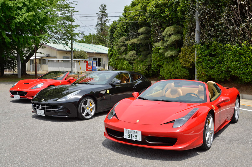 5月16日(水)には、紫カントリークラブ すみれコース(千葉・野田)にて東京大会を開催した。当日は、前日まで降っていた雨がウソのように晴れあがった。同コースは1967年開業の名コースとして知られ、昨年までのコース改良と、今年のクラブハウスリニューアルを終え、今注目のコースの一つだ。ファウスト会員をはじめ参加者たちは、温かな陽気の中、和やかにラウンドし、「確かにいいコースだった」「きちんとした難しさがあって面白かった」という好評の声も聞かれた。プレー後は、フェラーリ 458イタリア スパイダー、カリフォルニア スパイダー、そしてFFの試乗会がコーンズ芝ショールームによって行われ、多くの参加者たちが運転し、重厚なエンジン音を響かせていた。同じく、表彰パーティではコーンズと協賛各社による豪華賞品が贈られ、盛況のうちにお開きとなった。