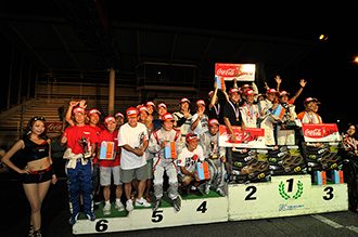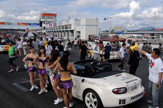 ピットから出たマシンがグリッドに並ぶ。セレモニーでは大会会長の挨拶、前回勝者カービューチームのトロフィー返還、それと予選トップのエンジンチームが選手宣誓を行った。そして各チームのPRとグリッドでの記念撮影がはじまる。緊張の度合いが高まるのはいわずもがな、だ。