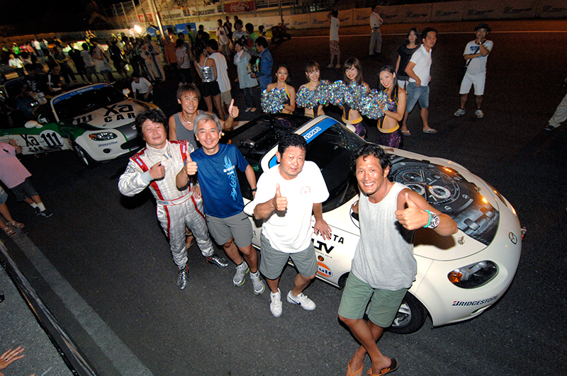 堀から最終走者の堀田へチェンジしたのは146ラップ目だった。まわりはすでに暗闇。夏の暑さがまだ残る季節だけに、日没後も気温は下がらない。ムッとする空気の中をロードスターのライトが不規則に流れる様はなんとも幻想的だ。そんな中160ラップ目に堀田がベストラップを更新。1分11秒726とタイムアタック並みの速さを見せる。