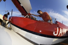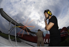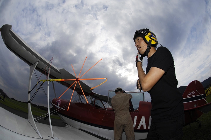 2012年秋。日本チームとして参戦したハンガリーでのWAAC(アドバンスト世界曲技飛行選手権)と、それに続くEAC(ヨーロッパ曲技飛行選手権)。そこで確かな手応えを胸にした室屋は、帰国早々慌ただしい日々を過ごしていた。まずは今回で第3回目となる「全日本曲技飛行競技会」の準備だ。日本でも唯一と言える環境を持つ、ふくしまスカイパークで行われるこの大会は、世界を舞台に活躍する室屋にとっても長年に渡る重要なミッションのひとつ。もっと空の楽しさを皆に知ってもらいたい。本気の人間なら世界を目指せる、そんな環境が作りたい。スカイパークには事務局の一員として、あちこちと動き回る室屋の姿があった。
