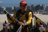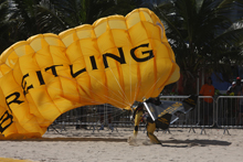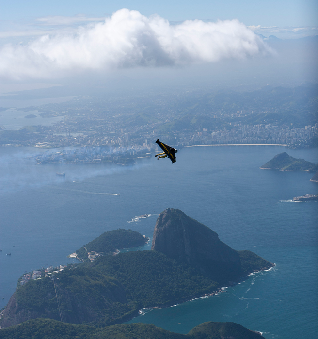 「もちろんだよ! フライトの始めと着陸時はものすごく集中しなければならない。だけど、その間は本当に最高の気分だよ!眼下に広がる景色を眺めたり、自分はどこにいるか、なんてことを考えながらフライトを楽しんでいるよ。上空から見るリオは、グリーンとブルーのコントラストが最高に美しかった! 時速200kmと言っても、モーターバイクに乗るのを想像してごらん。それと大差はないよ。方向だって、右に行きたいときは、目や頭、肩を少しだけ右に向ければいい。上に行きたいときは、視線を少しだけ上に移し、体をバナナのように反らせるだけだよ」。スカイスポーツの経験がなくとも、スノーボードをしたことがあれば、想像できるだろう。進行方向に少し体重を移動するだけで、その方向へ進むことができるあの感覚。それと同じだと彼は言う。「空の上ではリラックスしているよ。体全部の筋肉を使う必要もないし、特別な労力もいらない。僕にのしかかる力は何も感じない。僕は自由で、まさに鳥のようなんだ。だけど、翼は動かせないから、半分鳥で半分飛行機ってところかな(笑)」。