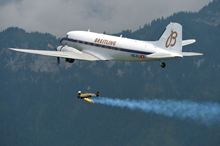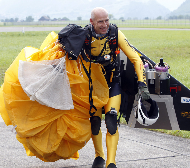 1959年生まれ53歳の彼が、「鳥のように飛んでみたい」と始めたこのプロジェクトは、現在、新たな展開も見せている。リオを後にし、スイスに戻ったジェットマンは、6月22日、ダグラス DC-3ビンテージ・プロペラ旅客機と肩を並べて飛行し、旅客機に乗るおよそ20人の乗客らに彼の飛行を披露した。小さな窓から見えるスーパーマンの映画さながらの光景は、乗り込んだ乗客らを興奮させたに違いない。通常は一人で自由に飛び回る彼にとって、人に見せるためのフライトは窮屈なものだったのではないかと思い、感想を聞いてみると意外な答えが返ってきた。