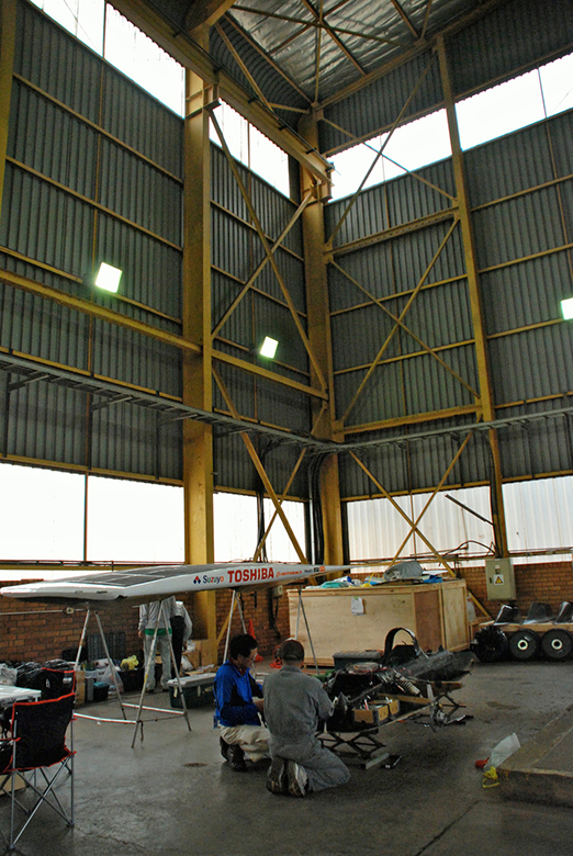 9月中旬、篠塚建次郎は南アフリカの首都・プレトリアにいた。ようやく冬が終わりに近づいていたが、まだまだ空気の冷たい頃だった。篠塚が今年結成した「ソーラーカーチーム篠塚」は、ここ南アフリカで9月18日から行なわれる「サソル・ソーラー・チャレンジ・サウスアフリカ2012」に出場するため、マシンの最終調整に追われていた。