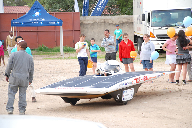 世界2大ソーラーカーレースと呼ばれているのが、オーストラリアで開催される「ワールド・ソーラー・チャレンジ」と南アフリカで開催される「サウス・アフリカン・ソーラー・チャレンジ」。それぞれが2年に1度、毎年交互に開催される。(*今年の大会は「サソル・ソーラー・チャレンジ・サウスアフリカ2012」という名称で開催)。前者はオーストラリア3000kmのルートをタイムで争う競技に対し、後者は南アフリカ国内4000km超の規定距離走破を目指すものだ。太陽光という再生可能エネルギーを動力に走行するソーラーカーが、スピード、そして走行距離とそれぞれの大会で競うことで、ソーラーカーの技術開発を推進しているのだ。