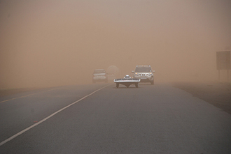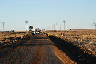 8時を過ぎ、時計の上ではチーム篠塚はスタートしたが、このまま充電を続行。雨が降るまではとにかく走るためだ。曇りがちな空の下、走行できるまでの充電が完了したのは11時半過ぎ。チーム篠塚はいよいよ最後の行程を走り始めた。順調に進んでいくと風が雲を飛ばしてくれたのか、晴れ間が見え始めた。しかしその風は同時に突然の砂嵐を巻き起こす。この地域を含むフリーステイト州特有の現象だという。繊細なソーラーパネルは砂やほこりに弱く、発電効率にも影響を及ぼす。猛烈な砂嵐は前方2~3mも見えないほど視界を妨げる。