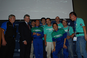 クラスはソーラーパネルの装着面積がそれぞれ違う三輪のチャレンジクラスとアドベンチャークラス、そして四輪のオリンピアクラスがあり、さらにEV車やバイク、ハイブリッド車などのテクノロジークラスがある。今大会には、現在2連覇中の東海大学チーム、そして地元の大学やプライベートチームなど14チームが集結しそれぞれのクラスで戦った。チーム篠塚は、7.0㎡のソーラーパネルを携えアドベンチャークラスでの競技に臨んだ。参戦したメンバーは、チーム代表の篠塚、監督の山田修司、エンジニアの塩川祐樹、ドライバー兼エンジニアの大嶋建一、ナビゲーター兼ドライバーの佐々木真人。さらに先導車、司令車、トラックを運転する地元ボランティア4人でチームを形成した。レース中、夜はキャンプを張って過ごす。火をおこして食事はバーベキュー。そしてシュラフに身を包んで眠る。ホテルに滞在するなんていう甘い環境では決してない。少人数ながら精鋭揃いのチーム篠塚の初の国際大会出場。どんな展開がチームを待ち受けていたのだろうか。
