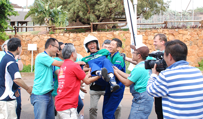 「雨の予報でついにここまでかと覚悟したが、神が味方してくれたのか陽射しに恵まれた。そしてとうとう規定距離をすべて走り切ることができた。我々チームの目標が達成できたことは素直に喜びたい」と篠塚。ゴールでは、メンバーが篠塚を胴上げして喜びを分かち合った。こうしてチーム篠塚は規定距離4632kmを走破し、見事アドベンチャークラスで優勝。さらにベストプライベートチーム賞、レコードブレイカー賞(全日程における最長走行距離走破)を受賞した。