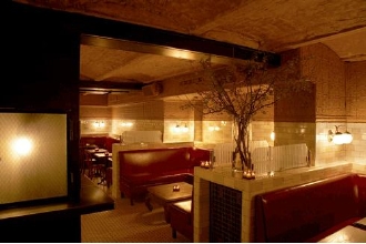 ビストロの地下に隠されたバー内部は、1920年代のベルリンを意識したデザイン。モダンとアンティークがうまく融合しており、白いタイルと赤いレザーが印象的だ。低めの天井は、まさに秘密基地といった雰囲気を演出。ここでは深夜12時を過ぎる頃からセレブリティ、アーティスト、ファッション関係者が集結し、グラマラスなシーンが繰り広げられている。