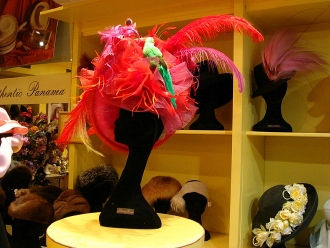 「オーセンティック・パナマ」は、もともとは、パナマ帽の専門店として出発した、Chapeauterieシャポトリー(高級手作り帽子店)です。パナマ帽は、こんなに種類が!というほど様々なヴァリエーションがあり、お値段も80ユーロ〜3000ユーロと幅広くあります。パナマ素材を用いたおしゃれな帽子も有名で、毎年エルメス杯の当日は、注文してあった帽子を受け取ってからエルメス杯に向かう顧客のために、日曜日も特別に営業しています。ご婦人用には、羽、鳥、フルーツ、生花、などで飾られた帽子や、冬は、最高級の毛皮を用いた帽子など、繊細なデザインが特徴的です。お店で売られている帽子も、クチュール感覚あふれる帽子や、芸術作品のような一点ものが揃っています。サイズは、シャポトリーの腕の見せ所、自分の頭にぴったり合うように調節してくれます。世界でひとつのパナマ帽で、粋にパリを闊歩する、または注文した帽子で華やかに着飾ったご婦人を同伴して、エルメス杯で優美な時間を過ごす、そんなパリならではの大人の楽しみ方をご堪能ください。
