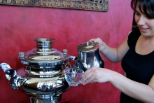ダウンタウンからマーケット・ストリートを渡って南へ少し下ると、憩いの場として現地の人たちに親しまれている公園「Yerba Buena Gardens(ヤーバブエナ・ガーデン)」が広がる。のんびりと芝生の上に腰を下ろせば、噴水の音をバックミュージックにしながら心地よい風を感じることができる。都会の中にぽっかりと浮かんだオアシス。そんなガーデンを見ながら、世界各国のお茶を楽しめるのが「Samovar Tea Lounge(サモヴァ・ティー・ラウンジ)」。店名のサモヴァはロシアのお茶を入れるポットのこと。お茶というと、ご婦人達がおしゃべりをしながら優雅に過ごすティータイムという印象が強い。しかしここ数年サンフランシスコでは、お茶がかなり真剣なビジネスとしてブームになっているのだ。何種類もある中国茶の利き茶をしたり、日本の最高級玉露を丁寧に入れたりと、内容は本格的。「サモヴァ・ティー・ラウンジ」では、世界各地の生産者と綿密に連絡を取り、人気のある茶葉からとても珍しいものまで取り揃えている。白茶、緑茶、ウーロン茶、紅茶、プーアル茶、ハーブティーなどがポットで味わえるほか、気に入ったものがあれば茶葉を購入することも可能。そして、お茶に併せて日本、インド、ロシアなど各国料理の軽食も用意しているので、合わせて楽しむこともできる。オーナーのジェシーさんは、コンピュータ業界でバリバリ働いていた経験を持つ。でも、「何か人間的なものを感じたくてこのビジネスに足を踏み入れた」とか。ホームページでは独自に製作したビデオで、お茶とその文化について紹介している。