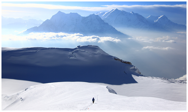 見上げた空が、肌を刺す空気が、踏みしめる雪が発する〈声〉に、竹内は絶えず耳を傾ける。自分の目で見て、感じて、決断を下す。頂への一歩を、踏み出していく。