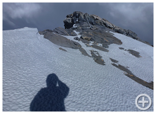 14座の最後を締めくくった、ダウラギリの頂上。竹内一人での登頂になってしまったため、自分の影を入れて頂上を写真に収めた。5月26日午後5時30分。(撮影:竹内洋岳)