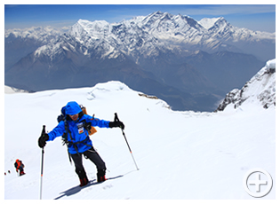 ダウラギリにて標高約6500m付近からの絶景。遠くにマナスルやニルギリが見える。(撮影:中島ケンロウ)