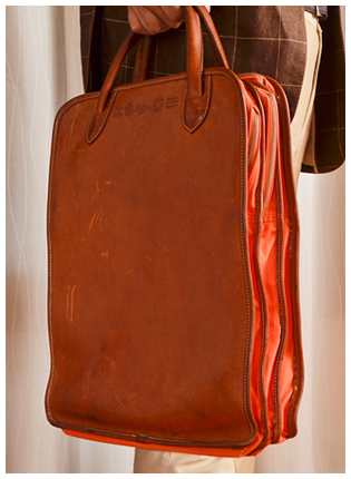 「もう7年ぐらい使っています。色々なプロジェクトが同時進行していくので、資料ごとに分けて収納できるこのカバンは自分にぴったり。PCを中央へ入れれば、資料がクッションになってくれる。カバンでも何でも、置いてあるときの佇まいを大切にしていて、その意味でもお気に入りですね。使い込むほど味が出てくる風合いもいいでしょう」