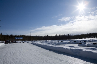 F そんなふうにゴーカートも面白かったのだけど、サーキットがまたすごい。鈴鹿みたいになっていてね。写真を見ると平原みたいに見えるけど、実はちゃんと雪の壁があるとても長いコースになっているの。もちろん、この壁に突っ込んだりもする。Uターンカーブでは大体時速70kmくらいのスピードで突っ込んでいくんだけど、普通のサーキットなら時速300kmくらいの感覚じゃないかな。あれは怖い。下手すると車が潰れてしまう。ちゃんとアクセル放して、前重心でドリフトしないと曲がれない。でも、ここでrapも取って一周何秒のタイムトライアルもしてね。あれは凄い。ヤバい。