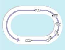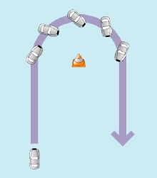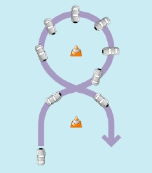 これをUの字コースに続き、8の字コースでみっちり練習。アクセル、ブレーキ、ハンドルのどれもが強すぎても弱すぎてもダメ。ベストの瞬間と力加減を見極 めるべく、何十回と繰り返す。ここまでで左カーブ、右カーブ、連続カーブなどコーナーリングの基礎を一通り練習したことになる。