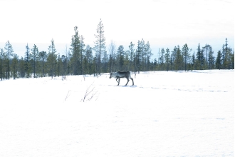 ヨーロッパ最北のラッ プランド地方は北緯66度33分以上の北極圏。いまは太陽すらあまり顔を出さない厳しい冬を終え、白夜に入る直前の春の季節だという。とはいえ気温は氷点下10度だったのだが…。