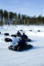 2日目の午後は、A4からスノーモービルに乗り換え、時速100キロ超で雪山を滑走。〉〉詳しくは「メフィストの小部屋vol.1」を参照。 中左&中右:たどり着いた先は、ゴーカート(もちろん凍結コース)。本来は余興で用意されていたプログラムだが、負けず嫌いのFaustたちはここでもタイムで競いあった。 下:移動する中で、何度も野生のトナカイに遭遇。その姿にしばしば癒される。
