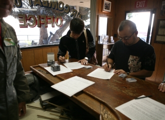 いかにも一昔前の田舎の飛行場を思わせるウッディなオフィス。そのカウンター脇に立っていた真っ白な口ひげを生やした大柄の白人が振り返り、あふれんばかりの笑顔で握手を求めてきた。