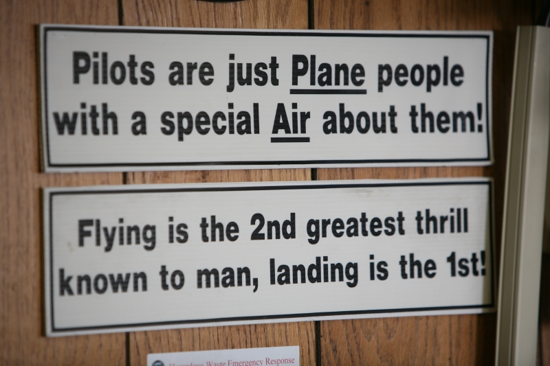 中:「パイロットは”普通の”人間にすぎない。ただそこに特別な“空気”があるだけだ」「男にとって、空を飛ぶことは2番目にスリルのあることで、1番目は着陸である」、掲示にもウィットがある。